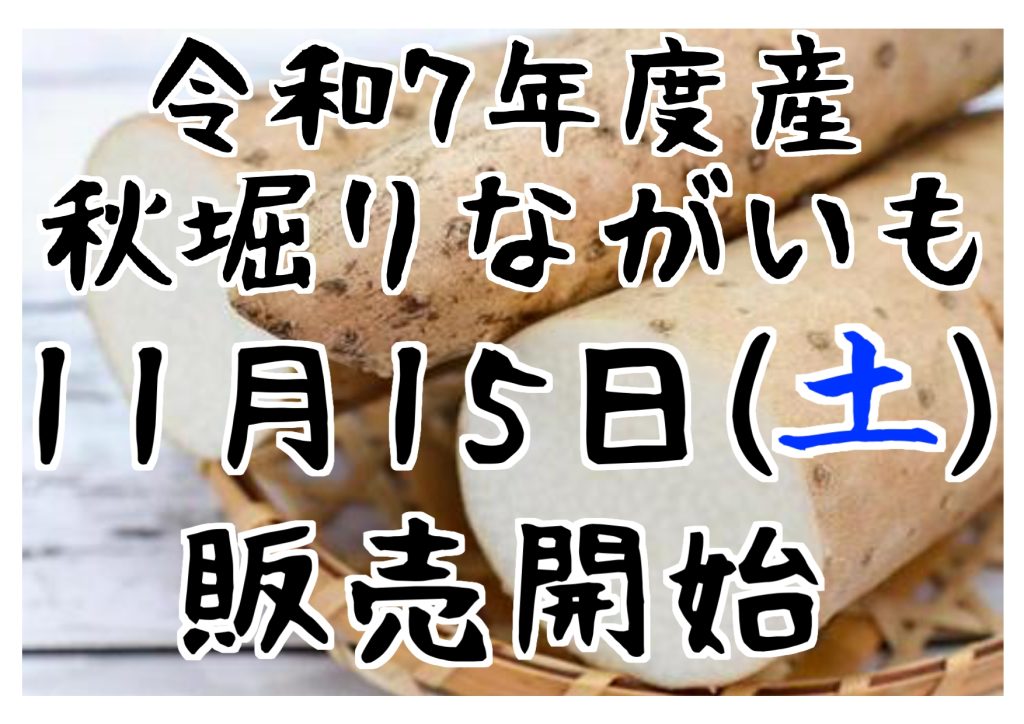 令和7年度のながいも販売開始のお知らせとなります。